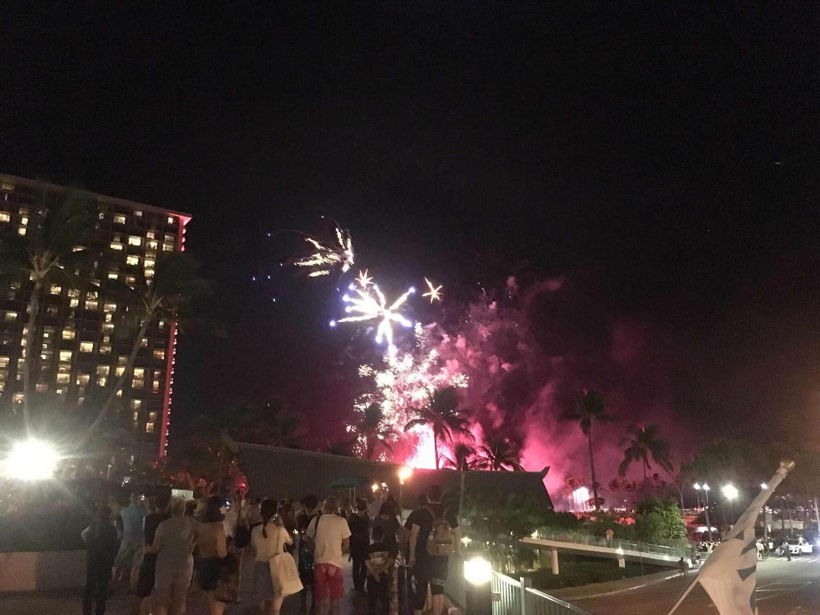 Standing up on the terrace that runs along the front of the Ilikai Hotel. This is were we stood to watch the Friday night fireworks. Last lot of photos we were down on the beach looking up at them. Took these photos below, standing back looking over to them from the hotel  terrace.