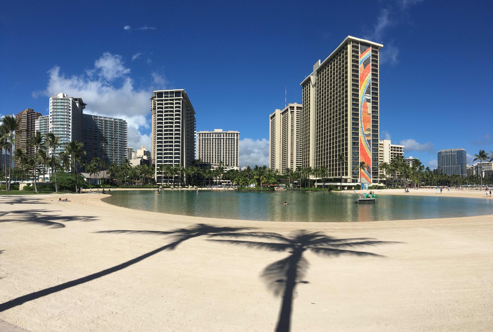 My usual favourite shots where we  go swimming. Looking over the Hilton Lagoon as we walk down the ramp from the Ilikai.